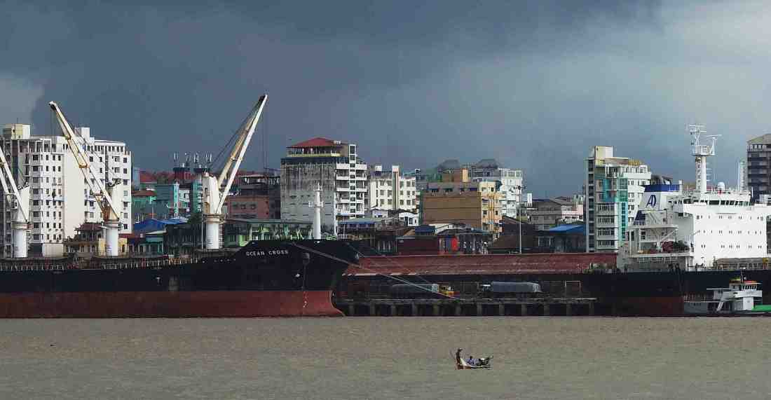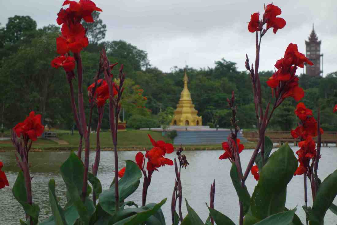 I’ve seen an “Airport” bus moving up Pyay Road from time to time and thought I’d try it. 500kyat (33 cents) in a comfortable, new, air-con vehicle. I discovered online that the starting point for this airport odyssey was the main Yangon Railroad Station. So I hiked there to find masses of buses parked. I boarded a likely one, whereupon the driver pointed excitedly at an “Airport” bus driving by us. He motioned me around the corner. I quickly decamped and trotted after the moving bus. In two blocks I found it stopped in the middle of the street at no official location. The ride took 50 minutes only, depositing me directly in front of the domestic terminal.