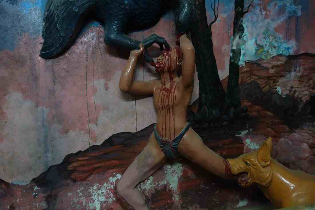 [Above photo: Satan himself dumping hot coals, in case people were chilly, onto a group of naked women. Hard to miss the censure of sexuality.]