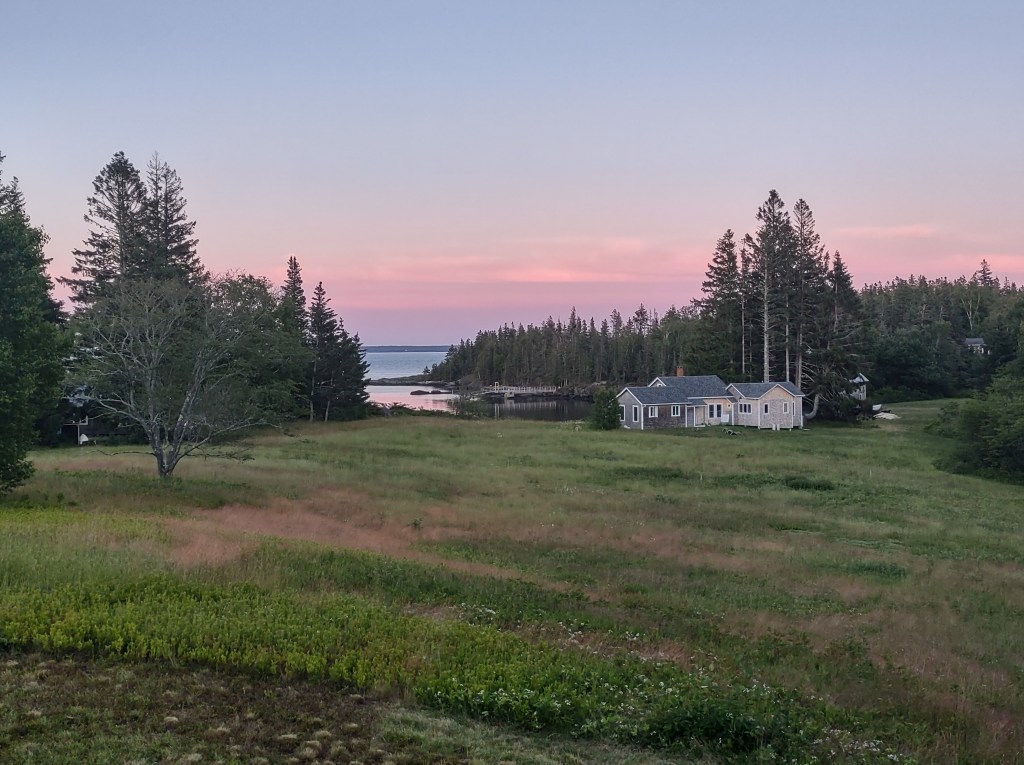 Most everyone has departed the island for the summer. Michael, the caretaker, Chris, an old friend of the island, and I are left. It is remarkably quiet, especially today which is one of Michael’s days off. I pumped this morning, after bailing last night’s downpour out of the rowboats. I suspect the only engine I’ll hear for the rest of the day will be the occasional lobsterman who is making the most of the season.