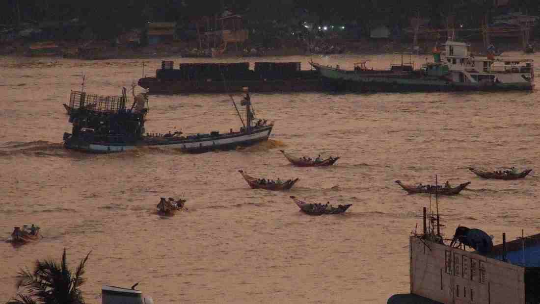 [Above photo: Early evening boat traffic on the Yangon River from my deck.]